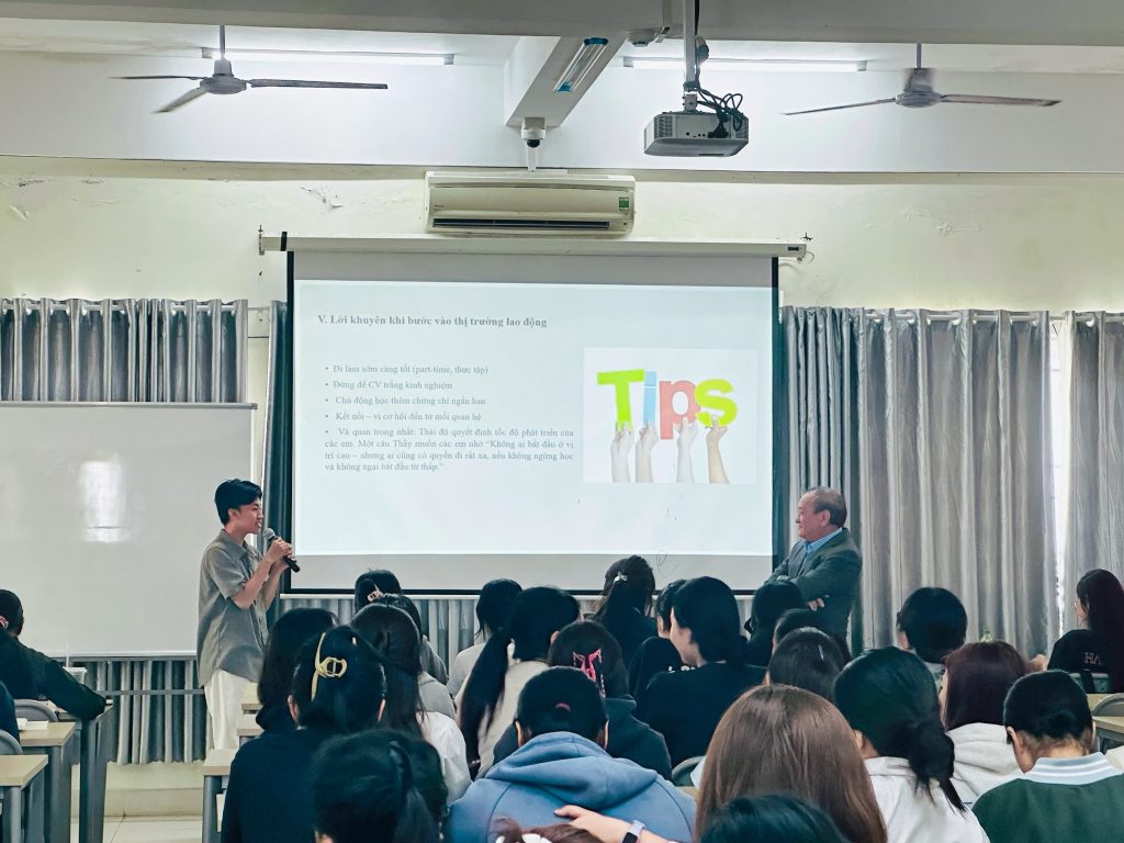 Trong bối cảnh thị trường lao động đang chuyển mình mạnh mẽ dưới tác động của trí tuệ nhân tạo và xu hướng toàn cầu hóa, Khoa tiếng Anh chuyên ngành – Trường Đại học Ngoại ngữ, Đại học Đà Nẵng đã tổ chức thành công chuỗi Đối thoại chia sẻ kinh nghiệm thực chiến dành cho sinh viên năm hai. Chương trình không chỉ mang tính định hướng mà còn tạo ra không gian kết nối giữa lý thuyết và thực tiễn, giúp sinh viên từng bước tiếp cận những yêu cầu của thị trường lao động hiện đại.